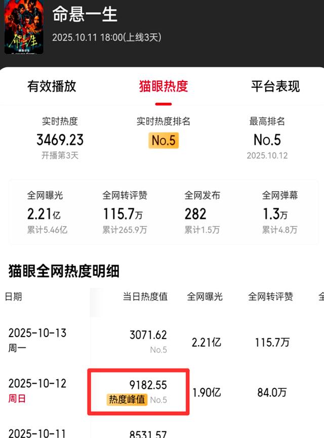 《命悬一生》第六集结尾,李庚希把带血的身份证推回抽屉,左下角实时热度从8994跳到9000,只用了七秒。